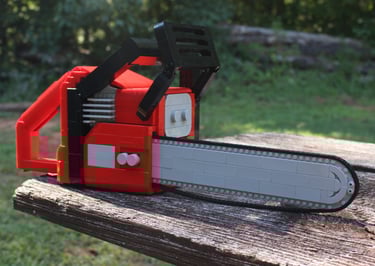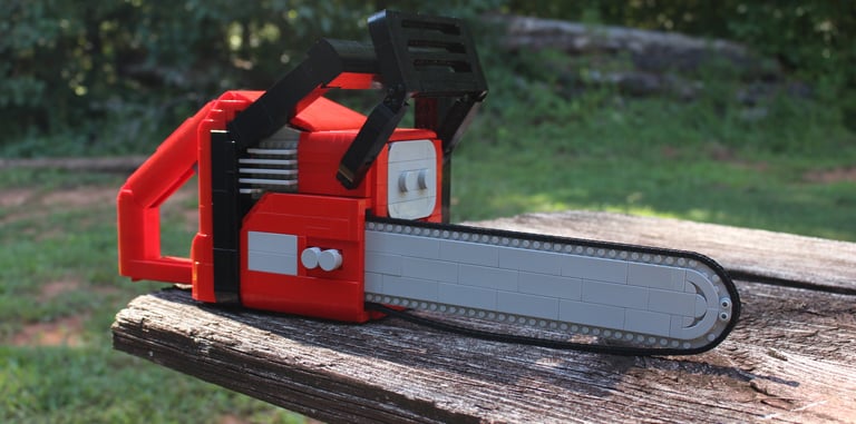 Not only does it absolutely smash my previous two chainsaws in looks, it also smashes them in functions. This chainsaw not only looks like a real one (and it's 1:1 scale, too), but it also features a 4x4 SVS vacuum engine (meaning it can run using a vacuum cleaner's suction), a working centrifugal clutch (which allows the chain to move when engine RPMs increase, just like a real chainsaw), a working pull-start (so you can pull it to start the vacuum engine), and a working chain brake (which keeps the chain from moving even with RPM increase).